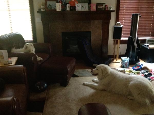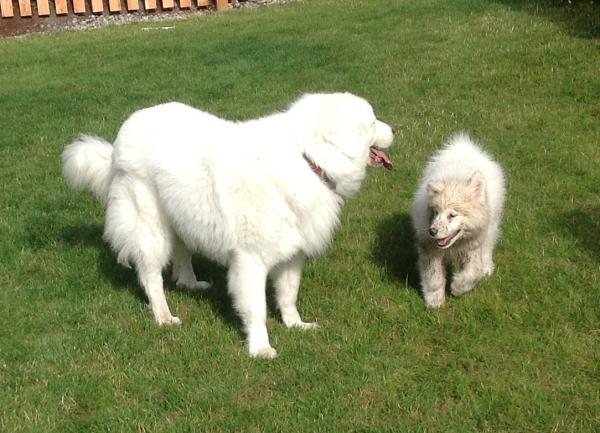 | Tank and his Great Pyr sister Gracie.