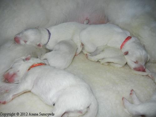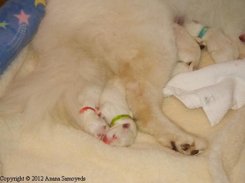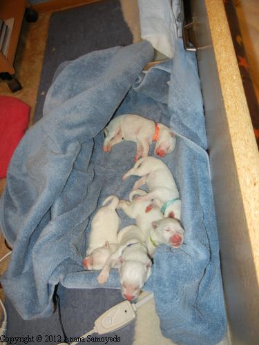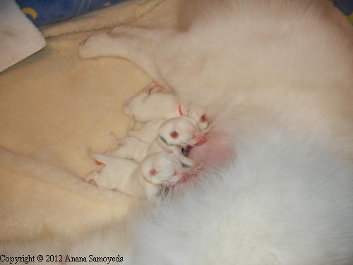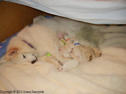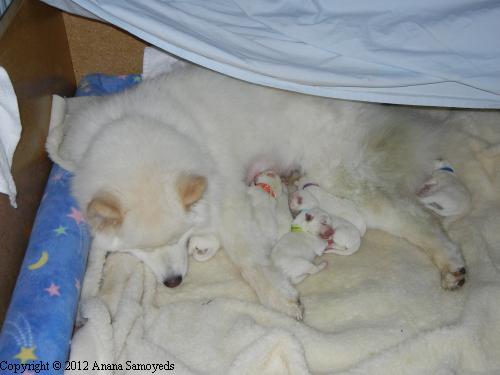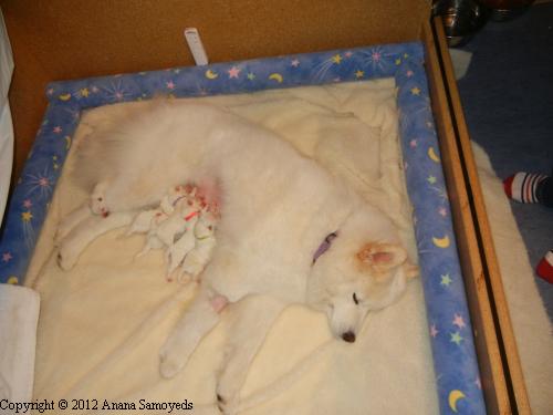 Nikita and the whole brood. She is very serious about her role as mother. She jumping right into the role with the first pup delivered.