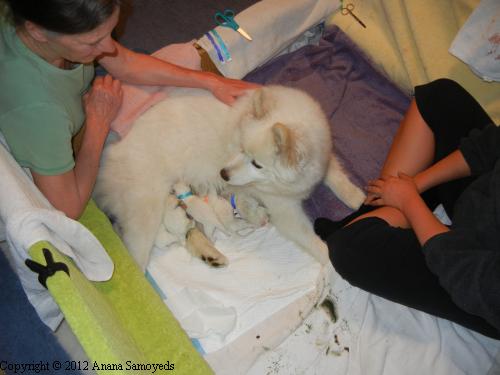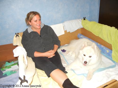 | Nikita and Ryann Grady our savior. Ryann was so kind to come over and help with the whelping. We owe her BIG TIME!! Having a calm experienced person around was INVALUABLE. Thanks Ryann!!
