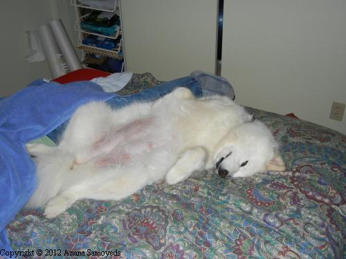 Nikita on the bed. She really liked the soft mattress with her increased size.
